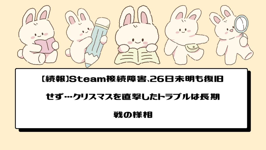 【復旧した模様】Steam接続障害、26日未明も復旧せず…クリスマスを直撃したトラブルは長期戦の様相